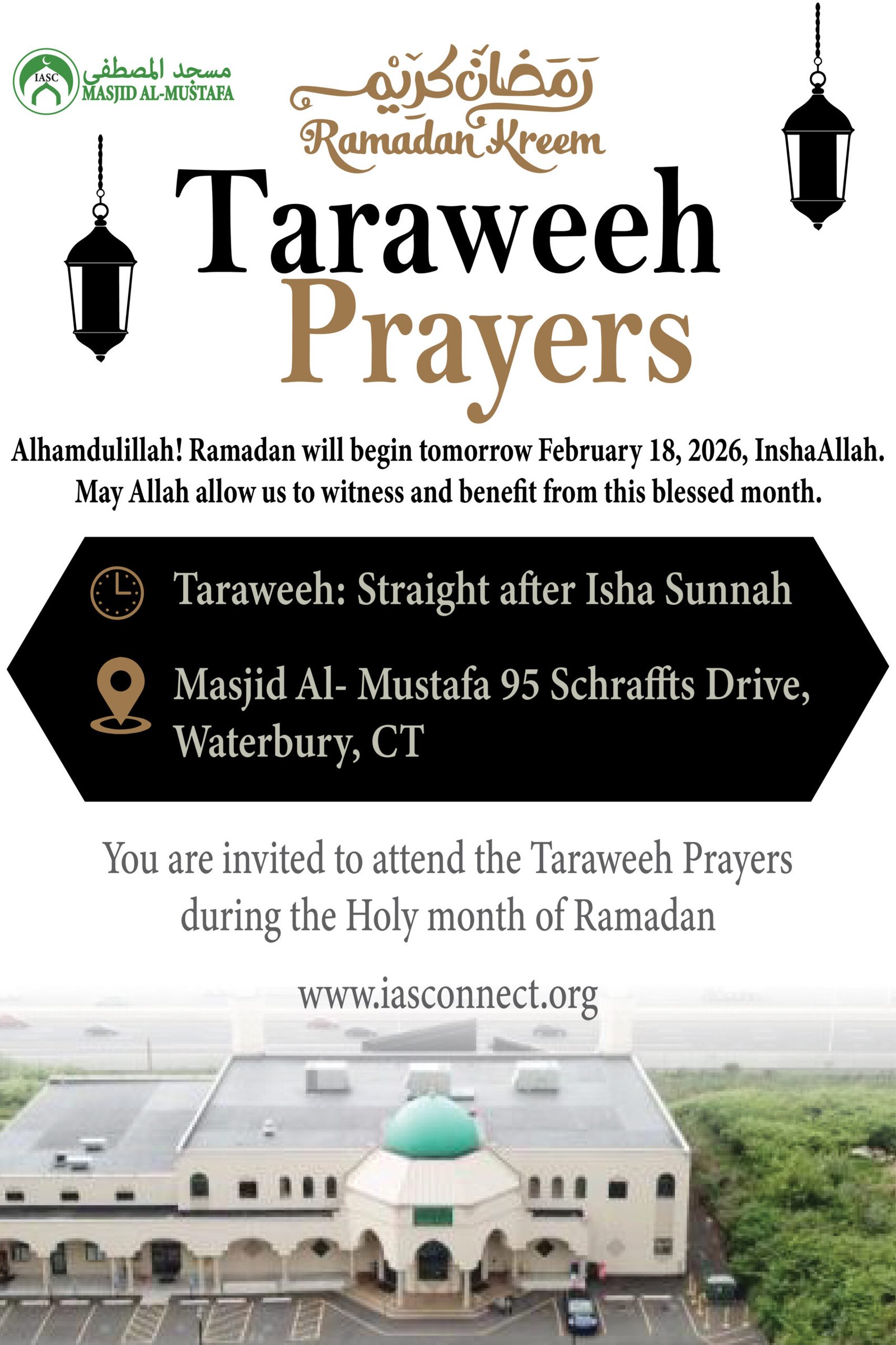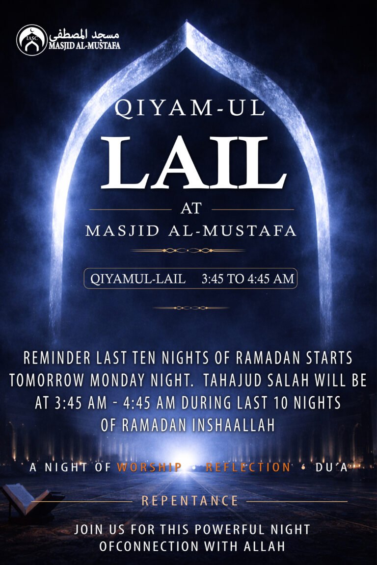 The best way to stay informed is to follow us on our social media channels and join our WhatsApp broadcast list for instant updates. Contact the Masjid office to be added.
